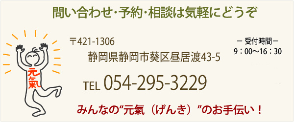 標高500メートルを越える峰山(みねやま)地区に縁(えん)あって移住してから往療を中心に活動していましたが、もっと多くの方に“元氣(げんき)”を発信できないだろうかという想(おも)いを、清流・藁科(わらしな)川が流れる静岡市葵区の山間(やまあい)の清沢(きよさわ)の里に、地域の方々、患者さん、友人・知人、家族・親族の支援の下(もと)、鍼灸院という形にすることができました。