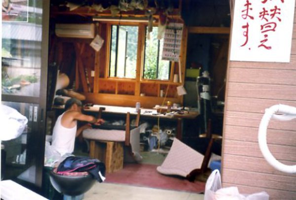珍しい業種です。 イスなどのカワ(革・合皮・布ほか)の張り替えをする職人さん。 通勤途中に車からのぞくと、いつも夫婦2人で仕事している姿が見えます。 なかなかの美男美女です。 みねやま鍼療所の診療ベッドは既製品の金属脚のものではなくて、内装職人さんの木製の手作りなのですが、ベッドの合皮はこちらで張ってもらったとのこと。 「清沢ふるさとまつり」では、かわいい正座イスを出品したりします。 知人が古い椅子の張り替えを頼んで、でき上がってきたのを見せてもらったら、ピンクの柄のベルベットみたいな布張りで、とても素敵に仕上がっていました。 お気に入りのカワを貼り替えてみる、面白そうです。